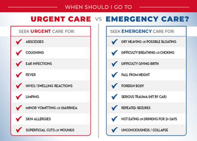 Emergency veterinary hospitals prioritize and treat patients based on their symptoms or condition severity. Any patient needing medical attention but not in a life-threatening situation may be asked to wait.